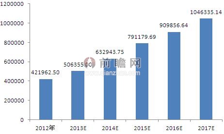 圖表2:2012-2017年我國鋰離子電池產量及預測(單位:萬只)