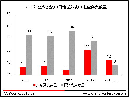 圖1 2009年至今投資中國(guó)地區(qū)外資PE基金募集數(shù)量