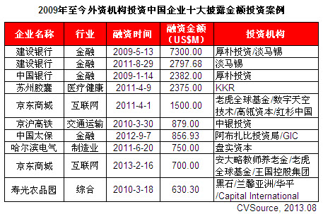 表1 2009年至今外資機(jī)構(gòu)投資中國(guó)企業(yè)十大披露金額投資案例