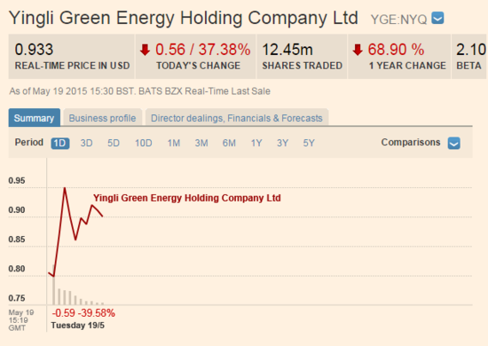 英利新能源周二股價暴跌近40% 盤中刷新52周新低