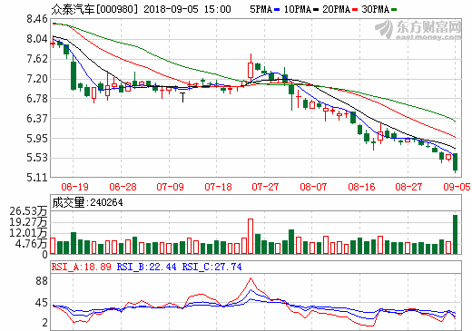 5日新能源汽車概念股盤后統計 眾泰汽車跌幅6.43%