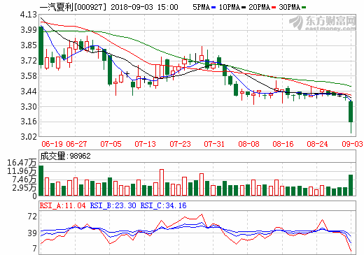 3日新能源汽車概念股盤后統(tǒng)計 一汽夏利跌幅6.23%
