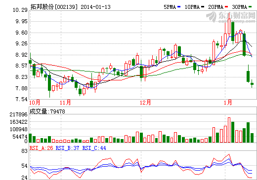 10日拓邦股份再次大跌9.66%,昨日繼續下跌1.12%,報收7.95元。對比1月8日收盤價9.74元,短短三個交易日跌去了18.38%。
