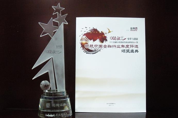 近日,在金融界網站和清華大學五道口金融學院聯合主辦的“2012領航中國金融行業創新發展高峰論壇暨領航中國金融行業年度評選頒獎典禮”上,國海證券股份有限公司憑借優質的服務,榮獲“2012金融界‘領航中國’金融行業年度評選證券業最佳服務獎”。