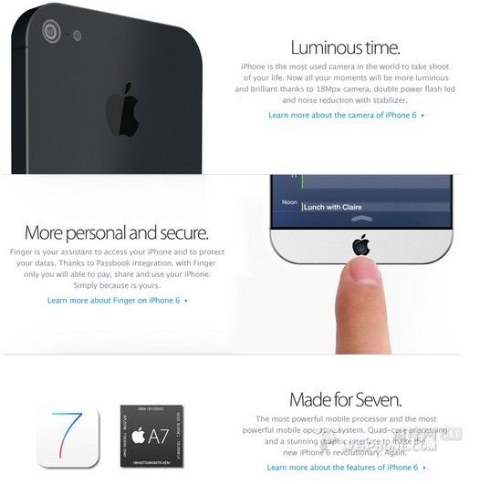 除此之外,iPhone 6 還將配備 1800 萬像素攝像頭、A7 處理芯片、雙 LED 閃光燈、指紋掃描功能等。如果是談到 2013 年的新款 iPhone,我們習慣稱之為 iPhone 5S,也就是在 iPhone 5 的基礎上做一些硬件的提升,同時添加一項殺手級別的軟件功能。而對于假想中的 2014 年 iPhone 6 ,我們則期待去除 iPhone 4 影子的全新設計。