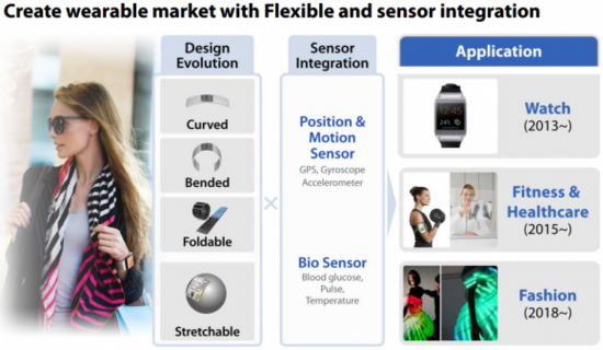然后在2015年開始三星將會正式進軍健身和醫療保健市場,從目前三星已經從美國專利和商標局獲取的“Samsung Sport”就能夠看出蛛絲馬跡。然后在2018年之前將這些設備進行大融合,而隨著柔性屏幕的引入,甚至還包括已經出現在版圖上的折疊屏幕將會進一步加快三星在這一領域的地位,而相關的前瞻產品有望在明年的CES大展和MWC大展上亮相。