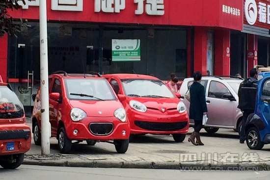 “不喝油,只耗電,插到普通插座上就能充電,充三四個小時(shí)能跑一百多公里。”該店?duì)I銷總監(jiān)萬革說,這里是“全眉山最大的電動汽車銷售中心” ,現(xiàn)在一個月能賣二三十輛電動汽車,其中既有納入國家補(bǔ)貼目錄、能在車管所上普通車牌的正規(guī)電動汽車,也有這種只有合格證、只能上廠家的“觀光車”車牌的低速四輪電動車。