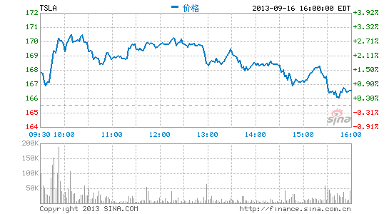 截至北京時間9月19日早6點33分,特斯拉報169.71美元,上漲2.1%。