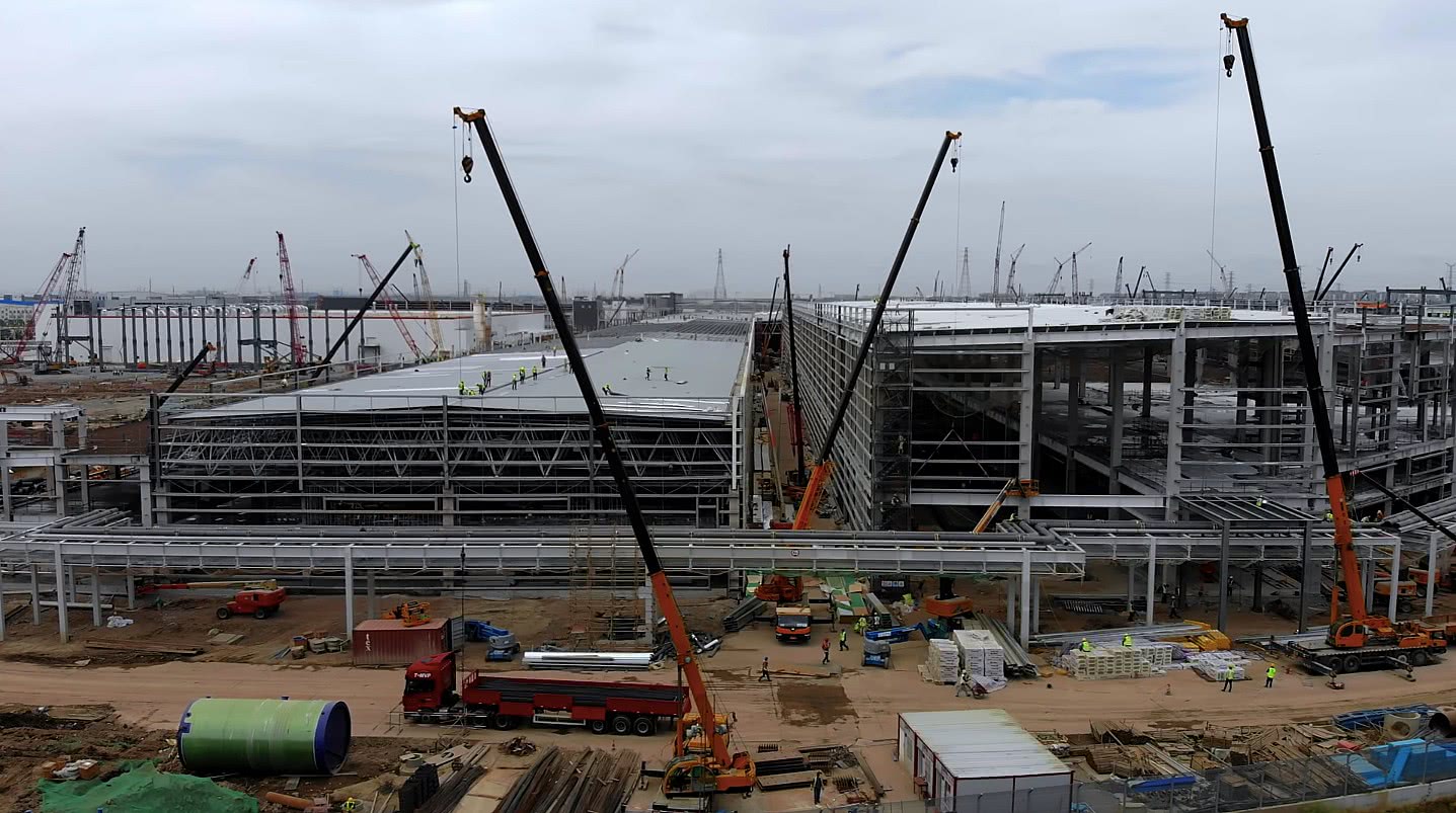 特斯拉上海廠悄然建設Model Y車間 開始鋪設屋頂