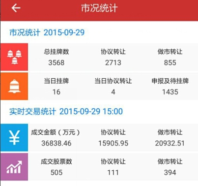 其中,協(xié)議轉(zhuǎn)做市2家。截止9月30日,新三板市場(chǎng)總掛牌數(shù)達(dá)3585家,協(xié)議轉(zhuǎn)讓企業(yè)2728家,做市轉(zhuǎn)讓企業(yè)857家;申報(bào)及待掛牌的企業(yè)共1556家。