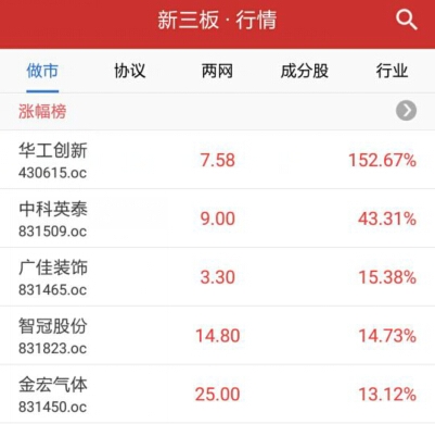 做市轉(zhuǎn)讓方面,有394家公司發(fā)生交易,成交3970.68萬(wàn)股,成交額2.09億元。其中,華工創(chuàng)新收漲152.67%,領(lǐng)漲做市股,不過(guò)成交額僅有7580元。