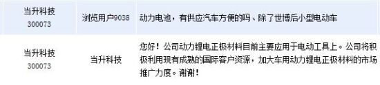 11月11日訊 當(dāng)升科技(300073)周二下午在全景網(wǎng)互動平臺向投資者表示,公司動力鋰電正極材料目前主要應(yīng)用于電動工具上。公司稱,將積極利用現(xiàn)有成熟的國際客戶資源,加大車用動力鋰電正極材料的市場推廣力度。當(dāng)升科技主要從事鈷酸鋰、多元材料、錳酸鋰等小型鋰電、動力鋰電正極材料的研發(fā)、生產(chǎn)和銷售業(yè)務(wù)。