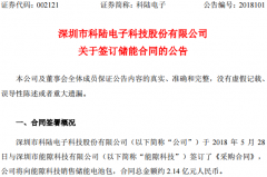 科陸電子將向能隙科技銷售儲能電池包,合同總金額約2.14億元人民幣,約占公司2017年度營業總收入 ... 查閱全文