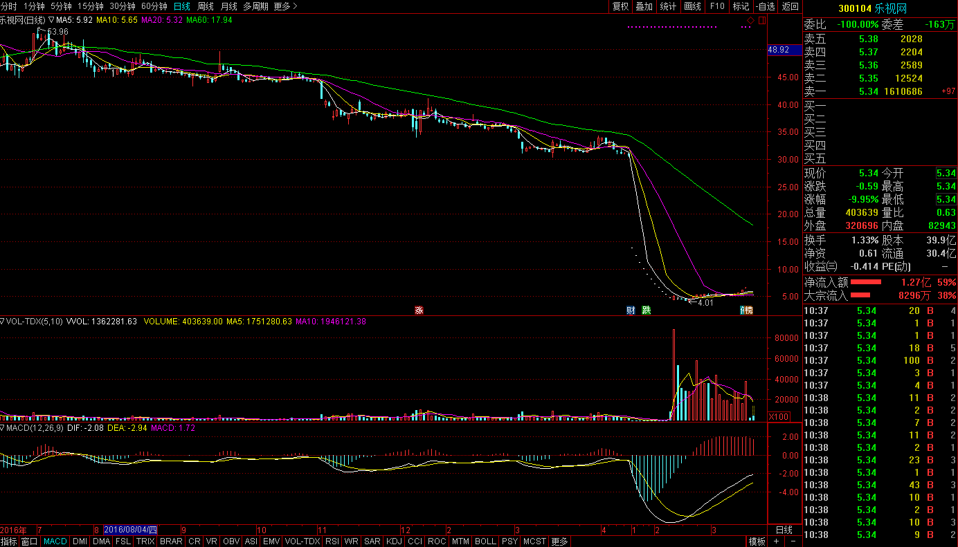 樂視網連續兩日跌停 孫宏斌卸任董事長