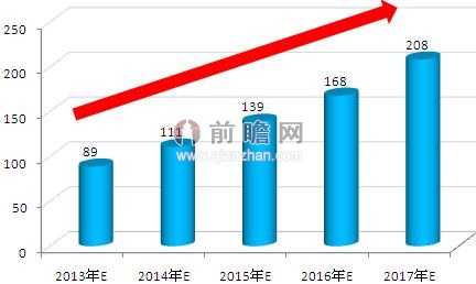 近年來,我國智能手機、平板電腦、移動電源等便攜式消費電子異軍突起,帶動小型鋰電池穩步增長,此外,電動汽車技術日益完善,大型鋰電池的市場需求也逐步釋放。預計未來幾年,這些需求動力仍然存在,鋰電池將保持增長趨勢,伴隨鋰電池的增長,鋰電池正極材料市場也將保持上升態勢。前瞻預計,未來五年我國鋰電池正極材料的市場規模將保持25%左右的速度增長,到2017年我國鋰電池正極材料市場規模將超200億元。