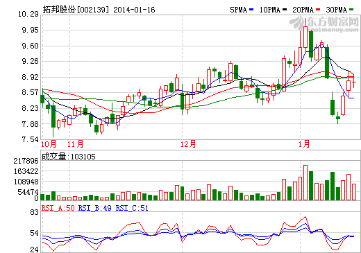 拓邦股份(002139)1月16日公告, 拓邦股份2014年1月16日收到深圳市科技創新委員會簽發的《深圳市科技創新委員會驗收合格證書》(證書編號:深科技創新驗字A2013230):公司“納米磷酸鐵鋰動力電池及電池管理系統項目”成功通過深圳市科技創新委員會驗收。