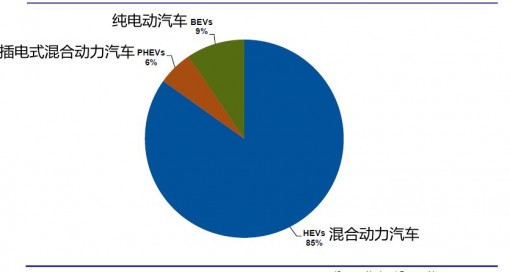 2014年,全球輕型電動汽車,包括混合動力車、插電式混合動力車和純電動汽車的年出貨量將首次突破200萬輛大關。其中,混合動力車的銷量將超過190萬輛,遠遠超過純電動汽車216,335輛和插電式混合動力車130,226輛的銷售規模。