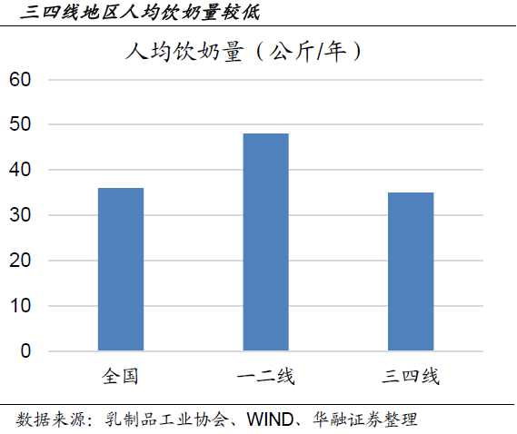 乳制品行業(yè)產(chǎn)量回升,龍頭表現(xiàn)突出。2019年原奶價格預(yù)計將下行,乳企有望受益于成本下行而改善利潤;當前我國三四線城市乳制品人均消費量較低疊加