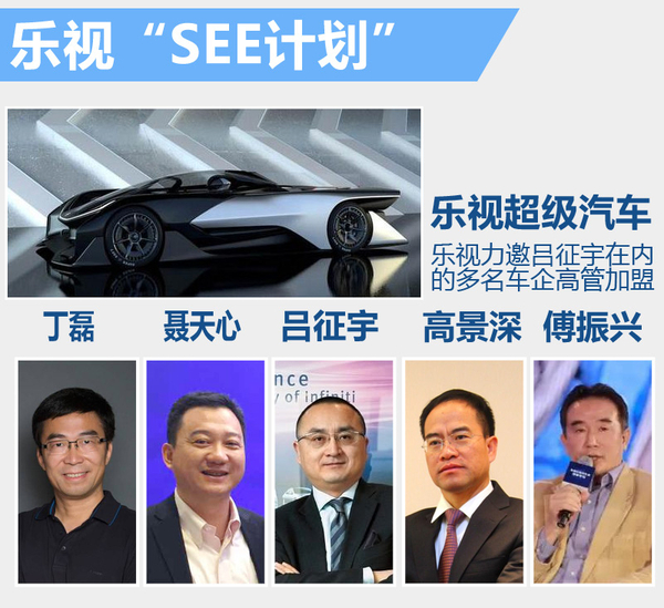 樂視為進(jìn)軍汽車領(lǐng)域,此前對(duì)外發(fā)布“SEE計(jì)劃”(Super Electric Eco-system),意為“超級(jí)電動(dòng)生態(tài)系統(tǒng)”的項(xiàng)目,要打造純電動(dòng)車和汽車生態(tài)系統(tǒng)。隨后于2015年正式成立了樂視超級(jí)汽車(中國)有限公司,并先后力邀前英菲尼迪汽車有限公司中國總經(jīng)理呂征宇、上海澤普新能源車輛科技發(fā)展有限公司總經(jīng)理的聶天心、廣汽吉奧汽車有限公司總經(jīng)理高景深在內(nèi)多位曾在車企擁有豐富銷售、制造管理的高層加盟樂視汽車。對(duì)此有業(yè)內(nèi)人士分析稱:樂視造車計(jì)劃已進(jìn)入實(shí)質(zhì)性階段。