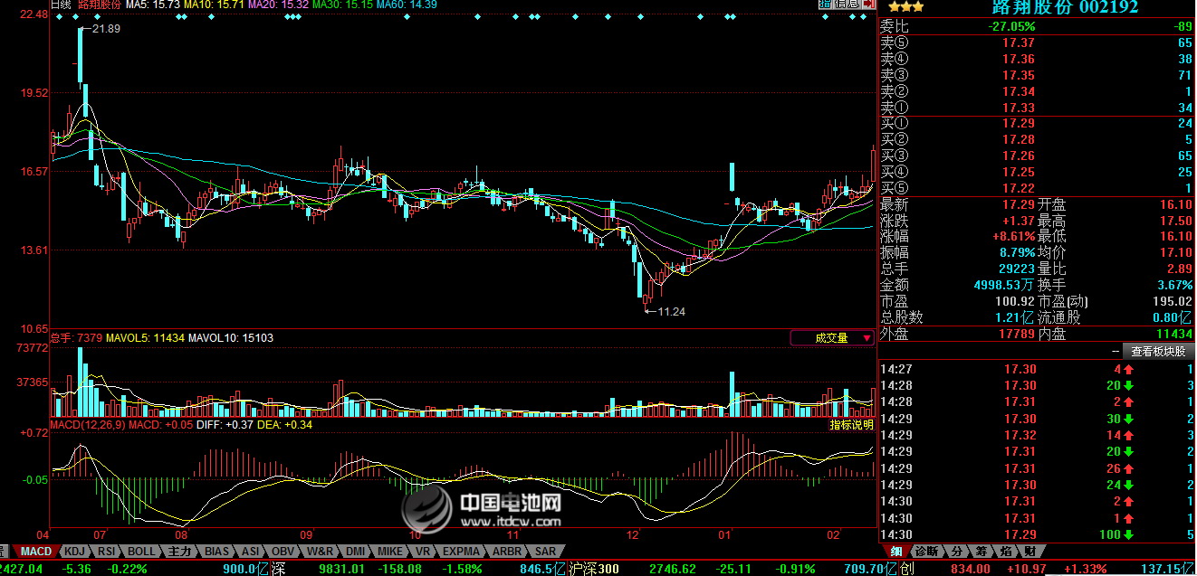 【本網(wǎng)訊】2月18日,蛇年股市開盤,鋰電池板塊再次受到資金面關(guān)注。領(lǐng)頭羊路翔股份(002192)強(qiáng)勢上揚(yáng),開盤16.10元,截止到14:16收在17.33元,漲幅為8.86%。消息面上,春節(jié)期間,智利、秘魯和玻利維亞連降暴雨且暴發(fā)洪水災(zāi)害,甚至連全球最干旱的阿塔卡瑪沙漠地區(qū),也遭到暴雨襲擊。而該地區(qū)是全球最大的兩個鹽湖提鋰生產(chǎn)企業(yè)主要原材料來源地,兩家企業(yè)合計(jì)占全球鋰鹽市場的半壁江山。