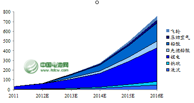 2011年-2016年國內(nèi)儲能市場情況及預測 國內(nèi)主要儲能類公司