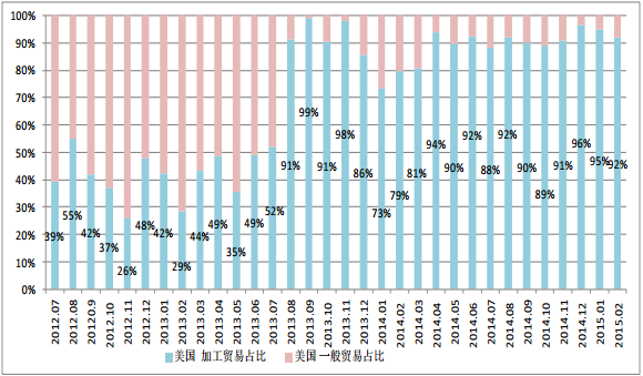 圖3 自美國按加工貿(mào)易進口占比3/6