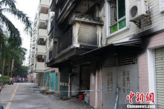 記者趕到事發(fā)地時(shí),現(xiàn)場(chǎng)已經(jīng)被封鎖,大批消防、公安干警還在進(jìn)行勘查、取證。事發(fā)樓房1至5樓外全是一片黑乎乎的,2樓陽臺(tái)放置的皮具沙發(fā)被燒得面目全非。而樓房東北面2樓的窗戶,還有一條用碎布扎成的長(zhǎng)布條從窗里往外垂下。