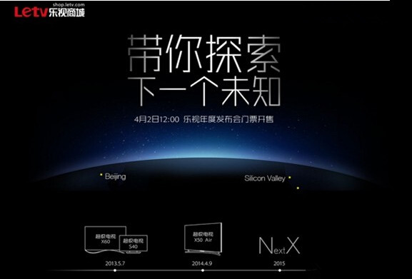 4月1日下午,樂視董事長賈躍亭的一條微博邀請函再次引起外界的關注。邀請函主題為“From 1984 to 2015”,地點在北京萬事達中心(原五棵松體育館),時間為4月14日下午14:00點。
