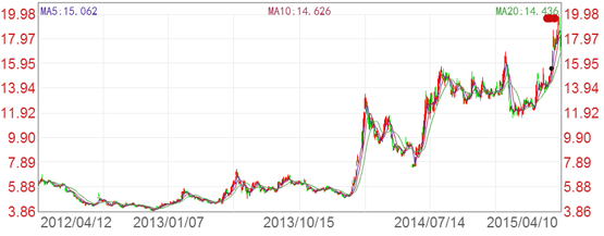 持續穩定增長的業績也讓萬向錢潮受到二級市場的追捧。公司股價從2012年底探至2.93元的低位后,便一路震蕩向上,2015年4月7日盤中更是創下19.98元的歷史新高。短短4年股價漲幅近10倍。