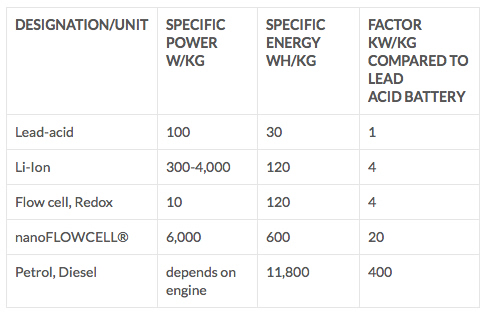 相較于目前研究較多的全釩(V)液流電池15~25Wh/kg的比能量密度,nanoFLOWCELL確實非常高。如果這個數(shù)據(jù)是真實可信的,那么他們的“高濃度”電解液確實非常有效得解決了液流電池在能量密度方面的短板,顯示到實際應用中就是電動車的出色續(xù)航表現(xiàn)。