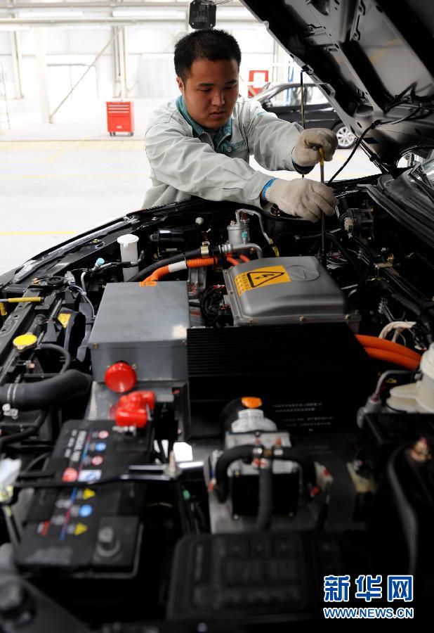 新鄉 市新能電動汽車有限公司的工作人員在電動汽車生產流水線上安裝電動機組(4月16日攝)。 近年來,隨著油價上漲和環保要求的提高,新能源汽車越來越受到市場的青睞。結合新能源汽車