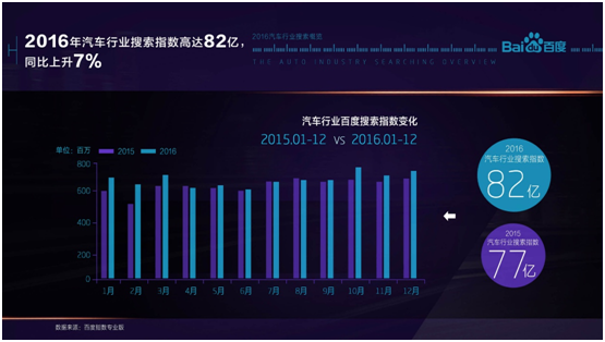 這一點在百度指數最新發布的《2016汽車成長報告》中可見一斑,汽車行業的搜索指數為82億,同比增長僅為2%;而對電動車,雖然搜索指數的絕對值僅為1.2億(其實較真實地反映了純電動車的市場占比情況),卻同比增長達到了27%。電動車市場確實在蠢蠢欲動。
