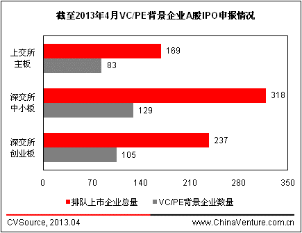 圖1 截至2013年4月VC/PE背景企業A股IPO申報情況