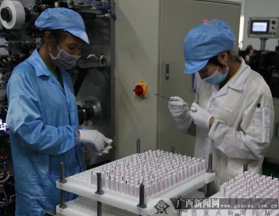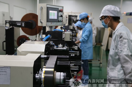 鋰離子動(dòng)力電池生產(chǎn)線。廣西新聞網(wǎng)記者 徐世杰 攝