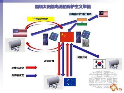 中國也沒有保持沉默,中國政府于2012年5月宣布,美國的可再生能源產業扶持政策違反世界貿易組織(WTO)規則,并提起訴訟。中國商務部也于2012年7月開始針對美國及韓國制造的太陽能電池多晶硅進行反傾銷調查,9月開始對歐洲制造的太陽能電池多晶硅進行反傾銷及反補貼調查。