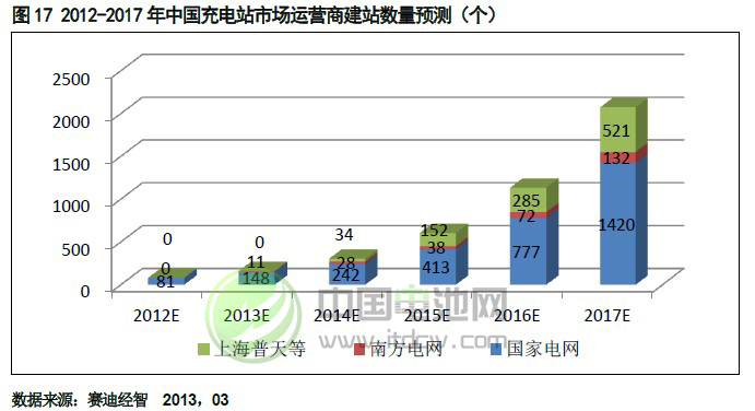 我們預(yù)測未來的電動汽車充電站市場競爭格局是“電網(wǎng)公司主導(dǎo),充換電模式并行,電池租賃加速推廣,分布式充電樁領(lǐng)跑,民營企業(yè)加入運營”。壟斷了電源輸送環(huán)節(jié)的國家電網(wǎng)和南方電網(wǎng),在電動汽車以電為唯一來源的技術(shù)背景下,必然是我國充電站行業(yè)的主要建設(shè)者,處于壟斷地位。
