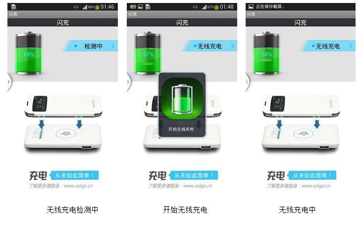 一塊看似普通的電池加“閃充“客戶端,就可讓三星S4從此告別數(shù)據(jù)線的煩惱。放上即充,拿開又可電話、游戲,工作娛樂兩不誤,簡直羨煞旁人。無線充電再也不僅僅是nokia的專利,讓我們解放S4,讓他更加完美!當(dāng)然這一切無線充電功能的實現(xiàn),“閃充”功不可沒。松果數(shù)碼強悍軟件”閃充”的部分功能,讓我們先一睹為快。