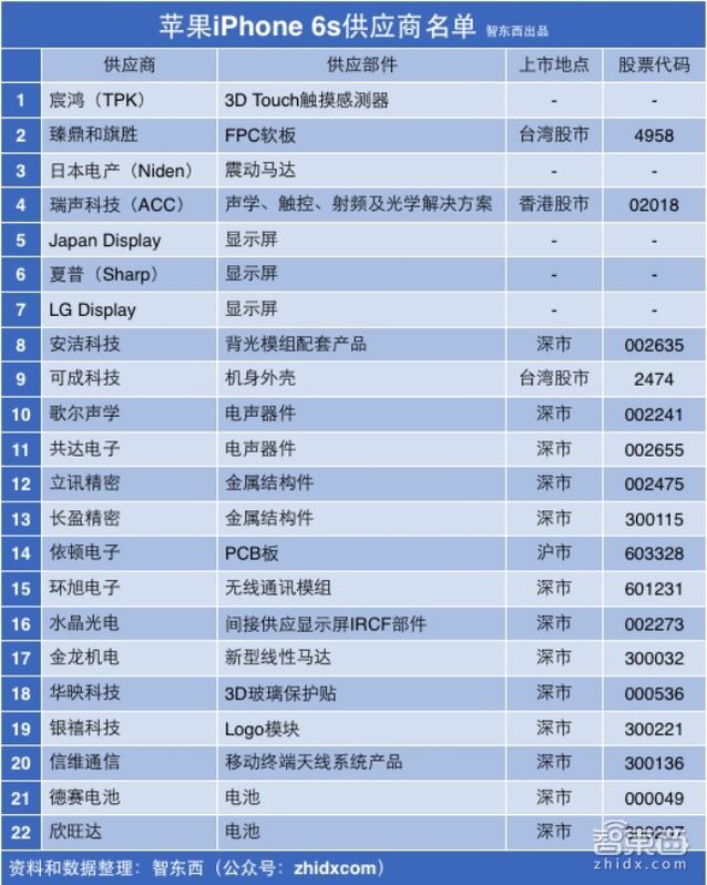 看著這個全家福,緊湊而不失整潔。在簡答的外觀之下,蘊藏著蘋果別樣的工業(yè)美學。同時,我們也不能忽視,在這里化整為零的這部iPhone 6s和手中的并非是蘋果一家的杰作,其背后是無數(shù)供應商、代工廠共同合力的結果。此前,智東西(公眾號:zhidxcom)曾曝光了一批此次iPhone 6s的供應商名單,致敬也應該獻給他們。