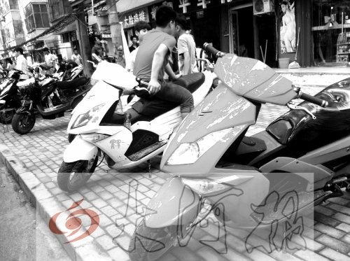 7月2日,鄭州市建設西路一所中學門口的車輛停放處,十余輛外形華麗的電動車格外引人注目。寬大的車輪與車身極不協調,車上大多裝有閃燈和音響,色彩艷麗的車殼上貼著大大小小的卡通圖案。看車師傅說,這些車都是學生的,去年還只有兩三輛,如今已經有20多輛了。