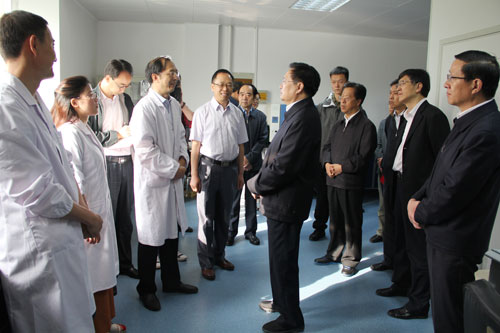 在參觀鹽湖化學分析測試中心時,王國生和機組人員握手談心,詢問他們的工作和生活情況,鼓勵年青人在各自的工作崗位上發揮生力軍作用,為我國鹽湖科技事業和經濟社會發展添磚加瓦。