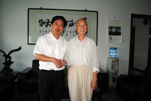 天津力神電池董事長秦興才(左一)與陳老親切合影