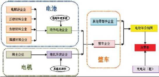 新能源汽車產業鏈主要包括上游動力電池及動力電池上游的電池材料、控制系統部分,中游整車制造部分,下游充電站、換電站運營部分,而最核心的就是動力電池。
