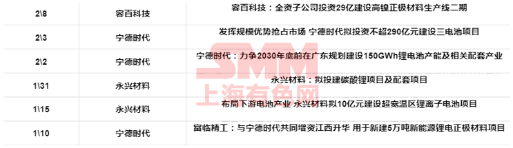 因此,在新能源汽車(chē)景氣度高漲的當(dāng)下,作為新能源汽車(chē)動(dòng)力核心的鋰電池,也深受一眾企業(yè)的青睞,在過(guò)去的7個(gè)月間,我國(guó)動(dòng)力電池裝車(chē)量累計(jì)63.8GWh,同比累計(jì)上升183.5%。其中磷酸鐵鋰電池裝車(chē)量累計(jì)28.0GWh,占總裝車(chē)量43.9%,同比暴漲333.0%。在如此形勢(shì)大好的背景下,不少企業(yè)紛紛開(kāi)始加速布局鋰電產(chǎn)能。以下是SMM根據(jù)時(shí)間軸整理的今年以來(lái)企業(yè)在鋰電領(lǐng)域的擴(kuò)產(chǎn)情況。