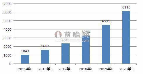 前瞻產(chǎn)業(yè)研究院綜合未來(lái)行業(yè)下游發(fā)展情況,國(guó)家相關(guān)產(chǎn)業(yè)政策的影響,結(jié)合鋰電池市場(chǎng)規(guī)模的歷史數(shù)據(jù),采用多項(xiàng)式擬合預(yù)測(cè)2015-2020年中國(guó)鋰電池的市場(chǎng)規(guī)模。到2017年鋰電池行業(yè)市場(chǎng)將達(dá)到2300億元左右,2020年行業(yè)市場(chǎng)規(guī)模達(dá)到6000億元左右。
