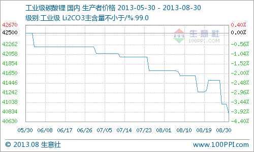 據生意社大宗榜監測數據顯示,本月末工業級碳酸鋰出廠均價40800元/噸,價格下行2.19%。本月中上旬碳酸鋰價格一直較為平靜,可下旬開始國內市場部分碳酸鋰價格出現小幅下滑,但大多依舊維穩。