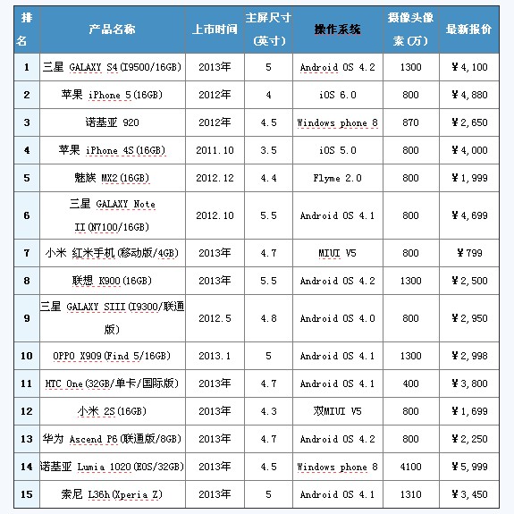 從上榜機型所屬品牌來看,十五款產品分別來自三星、蘋果、諾基亞、魅族、小米、聯想、OPPO、HTC、華為、索尼十家品牌旗下。其中三星與蘋果分別有三款與兩款機型上榜,占據五席,蘋果由于9月即將發布新品,導致蘋果iPhone 4落榜。
