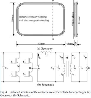 系統(tǒng)由位于汽車外部主級(jí)電路和位于汽車的內(nèi)部的次級(jí)電路、整流器以及驅(qū)動(dòng)系統(tǒng)構(gòu)成。通常在充電的時(shí)候,帶有扁平鐵芯的主級(jí)線圈,即耦合器,是通過手動(dòng)的方式被插在次級(jí)鐵芯中一個(gè)縫隙處,這樣,能量就能夠從安置在底層的主級(jí)電路被轉(zhuǎn)換到電池中。