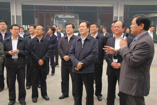 周本順和張慶偉等領導還在現場詳細了解產品研發、生產等情況,魏銀倉現場介紹說:“銀隆生產的純電動公交車采用鈦酸鋰電池,整車充電僅需10—15分鐘,續航里程可達160—200公里,整車充電循環可達2至3萬次?!?/p>