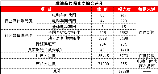 雅迪綜合評分僅與第一名相差19分,這對于數值過萬的總評分來說幾乎可以忽略。雅迪取得如此令人矚目的成績,與其獨特的創新營銷方式密不可分。從下表中可以看出,雅迪第三季度網絡營銷中成績斐然,標題浮現率高達98%,媒體報道量超過1280篇,并且其產品亦受到了經銷商及消費市場的廣泛關注,并實現了17.1萬人次的瀏覽記錄。