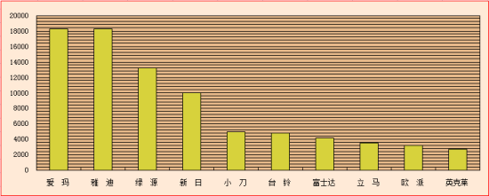 由電動車時代網發布的《電動自行車行業品牌網絡營銷口碑指數榜》2013年第三季度數據出爐。從本季度榜單排名來看,一線品牌的關注度整體表現突出,這在很大程度上也是得益于假期經濟和頻繁的市場營銷活動。本期榜單愛瑪持續占據榜首的位置,雅迪暫居第二,綠源再度躋身前三,其余進入前十的品牌依次是新日、小刀、臺鈴、富士達、立馬、歐派和英克萊。此外,值得一提的是賽克,其綜合實力較往期進步也非常明顯,從統計來看,其未來進入十強行列的希望也非常大。
